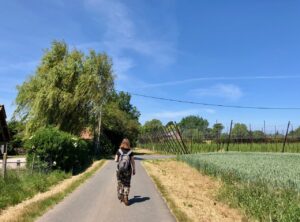 Saint-Jans-Cappel-sentier-des-Jacinthes-randonneuse