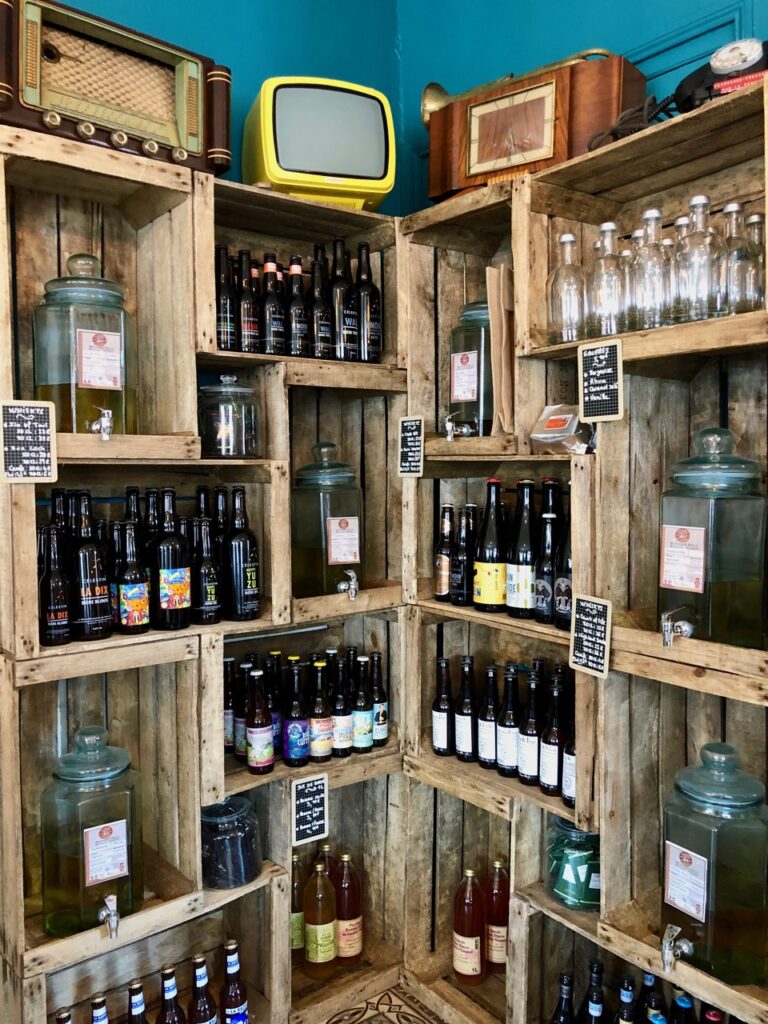 Alors oui, ils ont fait quelques changements côté déco. Mais rien de révolutionnaire non plus. Ils ont ajouté ces étagères qui proposent quelques bières d’ici.