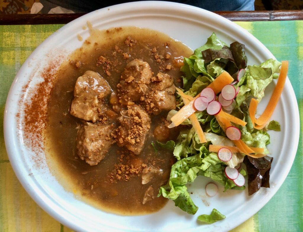 Mon compagnon, décidément très doué ces temps-ci pour repérer le plat à ne pas rater, a opté pour un sauté de porc au spéculoos (13,50 € aussi). Même si j’ai bien aimé mon plat, j’avoue que je l’ai un peu envié…