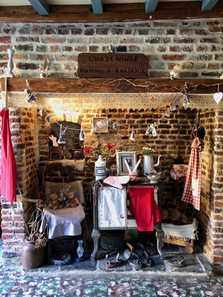Ainsi, le cadre est typiquement flamand, avec des briques anciennes, des poutres apparentes et une cheminée, sur laquelle on peut lire (si on a de bons yeux…) les prénoms des deux propriétaires, Mathieu & Benjamin.