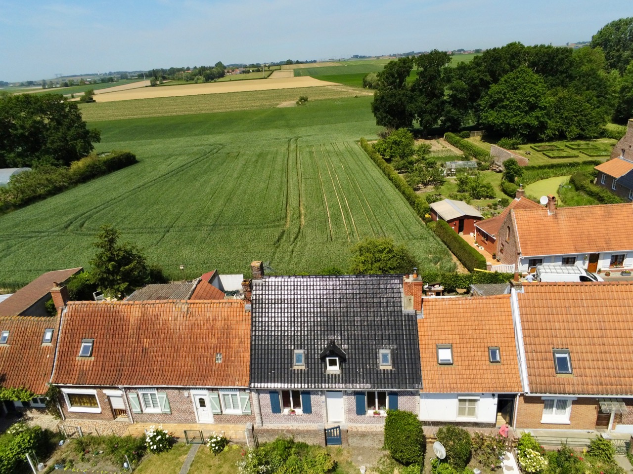 Village Patrimoine Rubrouck Flandre petites maisons vues au drone