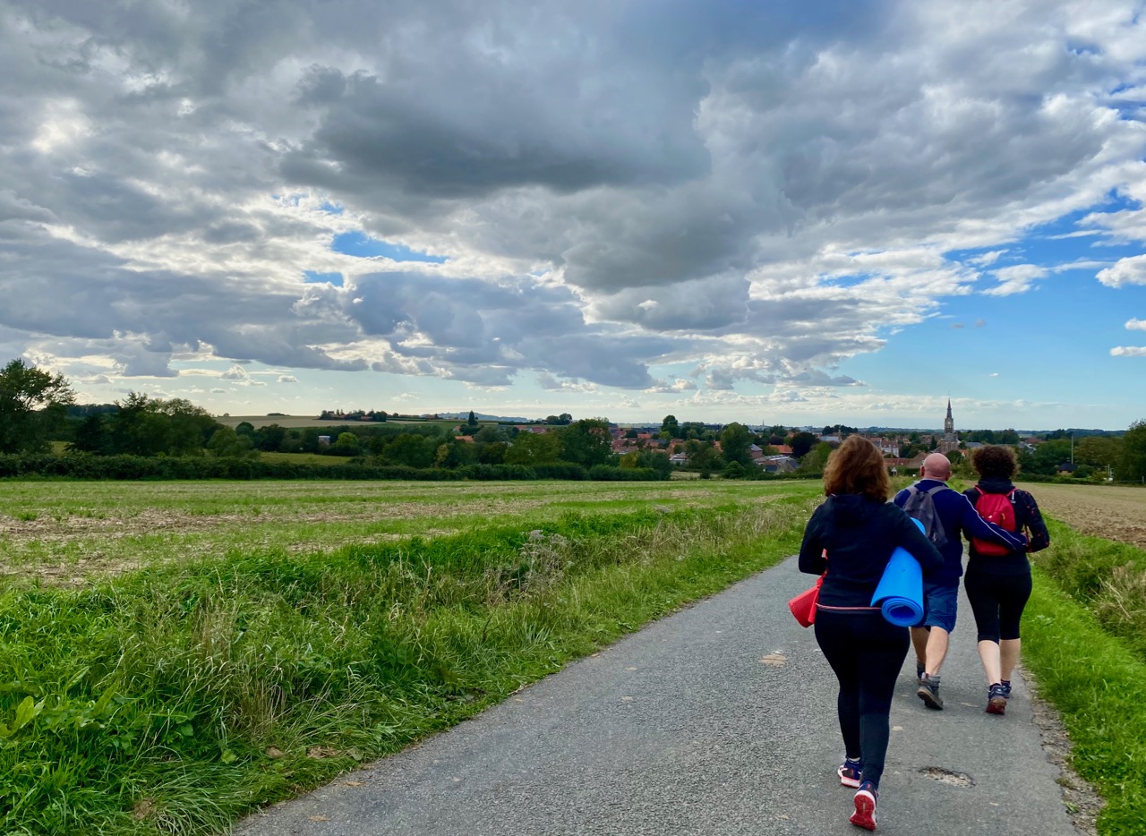 Au programme, 3,5 kilomètres de marche sur une partie du sentier des Fraudeurs, entrecoupée d’exercices de lâcher prise. La sophrologie, c’est le nouveau chemin de Betty Delannoye, emprunté après deux accidents de la route consécutifs. Elle découvre d’abord le Reiki puis se forme à la sophrologie, aimant tout particulièrement proposer des séances d’initiation en extérieur.