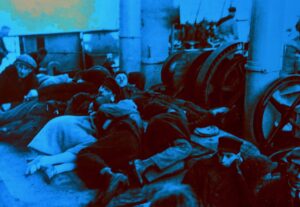 Gdynia Pologne musée émigration – photo ancienne groupe dormant par terre