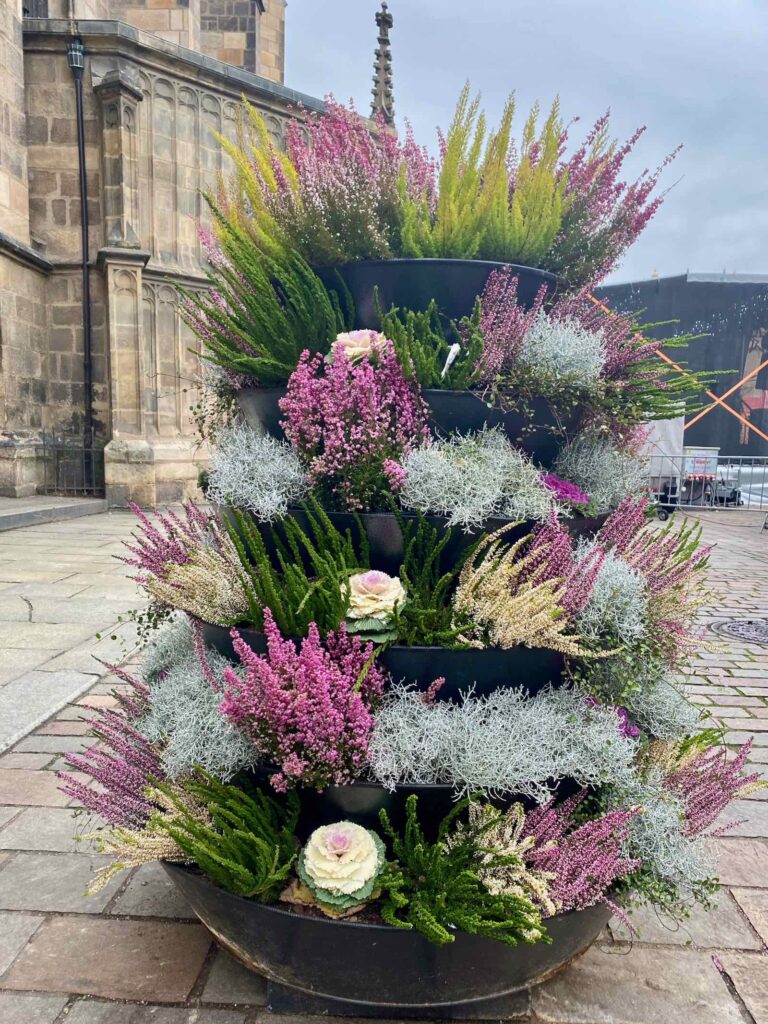 Devant la mairie, près de la cathédrale, autour des entrées de certains commerces ou cafés, on a sorti le grand jeu pour embellir la ville, grâce aux fleurs et aux plantes de saison. C’est beau, c’est coloré et cela donne tout de suite un air de fête à la ville.