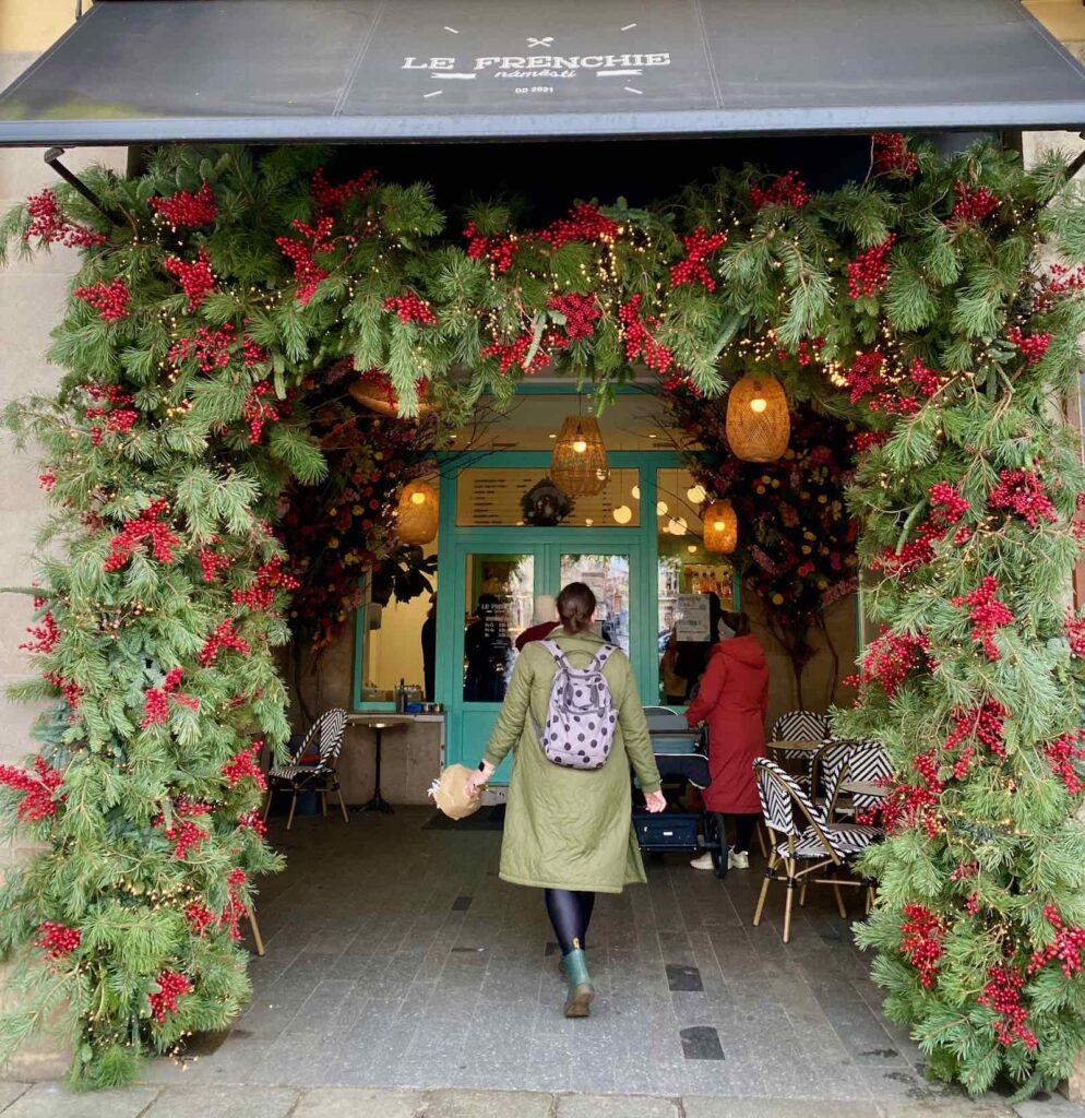 Je ne pourrais pas dire exactement combien ils sont. Mais d’après un rapide calcul, il y a une bonne centaine de chalets en bois, tous habillés d’une guirlande de sapin décorée de boules rouges et dorées. Classe !