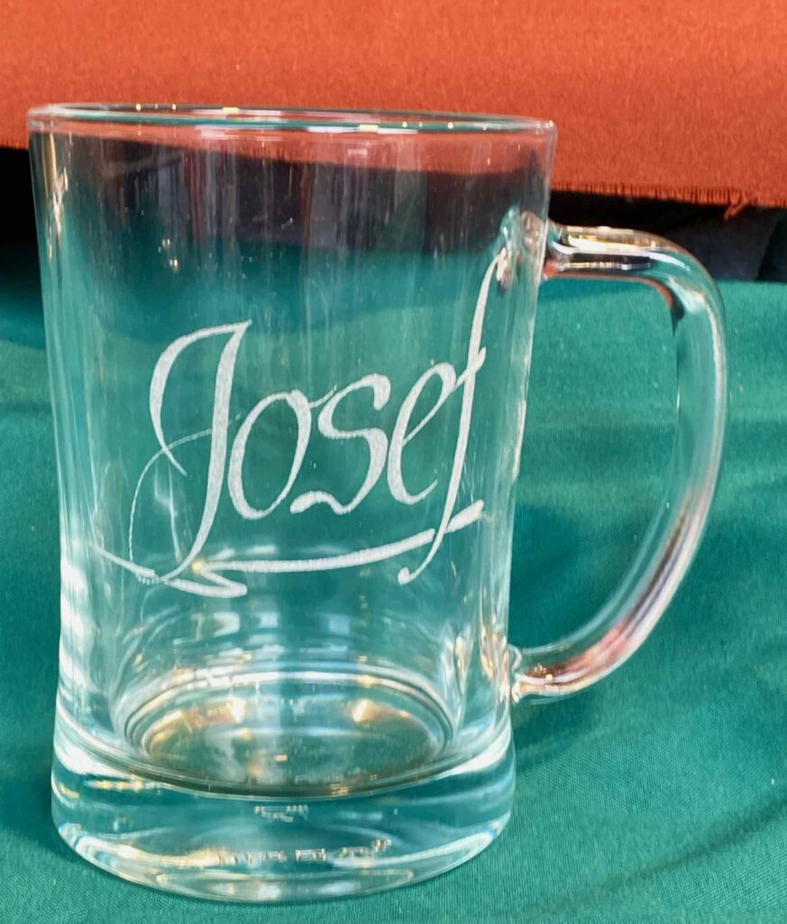 Il y avait foule autour de son stand. Penché sur une machine assez antique, un graveur de verre écrivait patiemment le prénom de ses clients avec une mini roulette sur un bock.