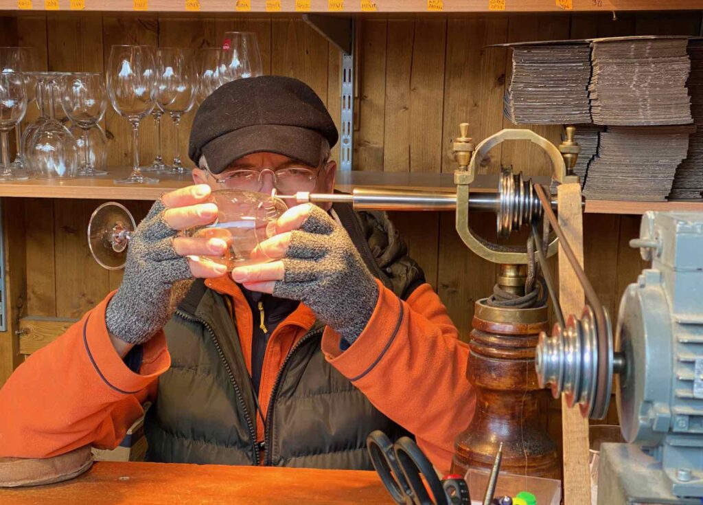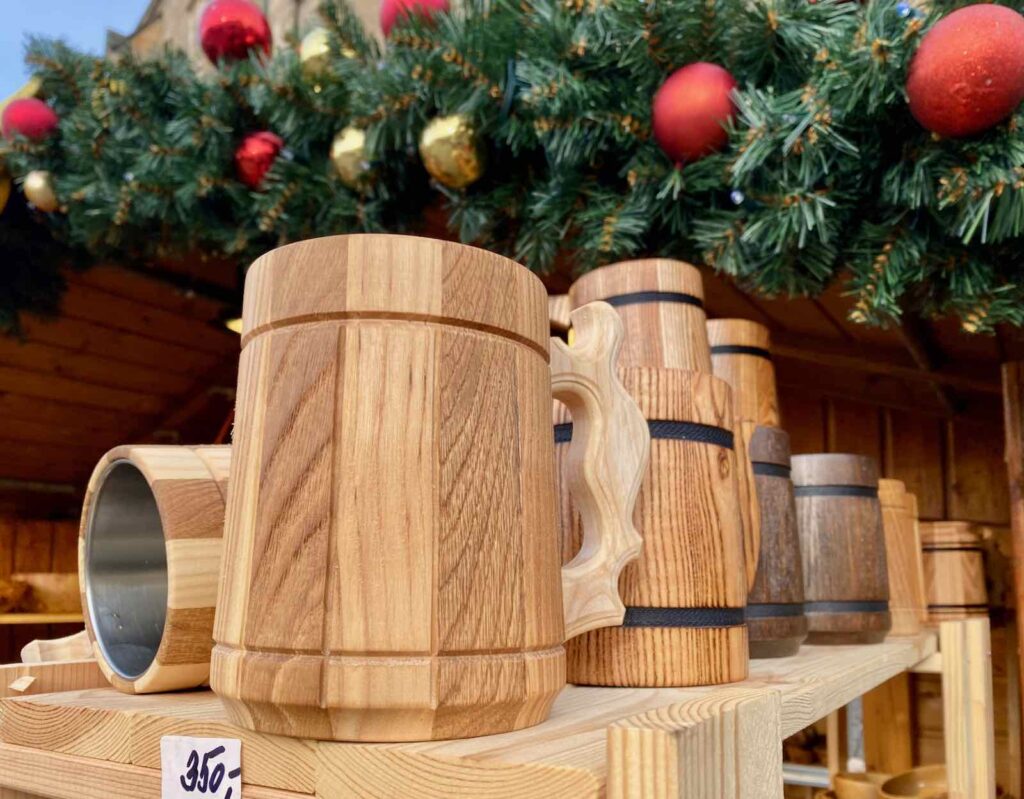 En République tchèque, le verre est l’une des stars de l’artisanat local et il est donc normal qu’on trouve une kyrielle d’objets en verre au marché de Noël de Pilsen. Des boules et des anges pour faire sa déco de Noël mais aussi des objets usuels, comme des cruches ou de jolis verres.