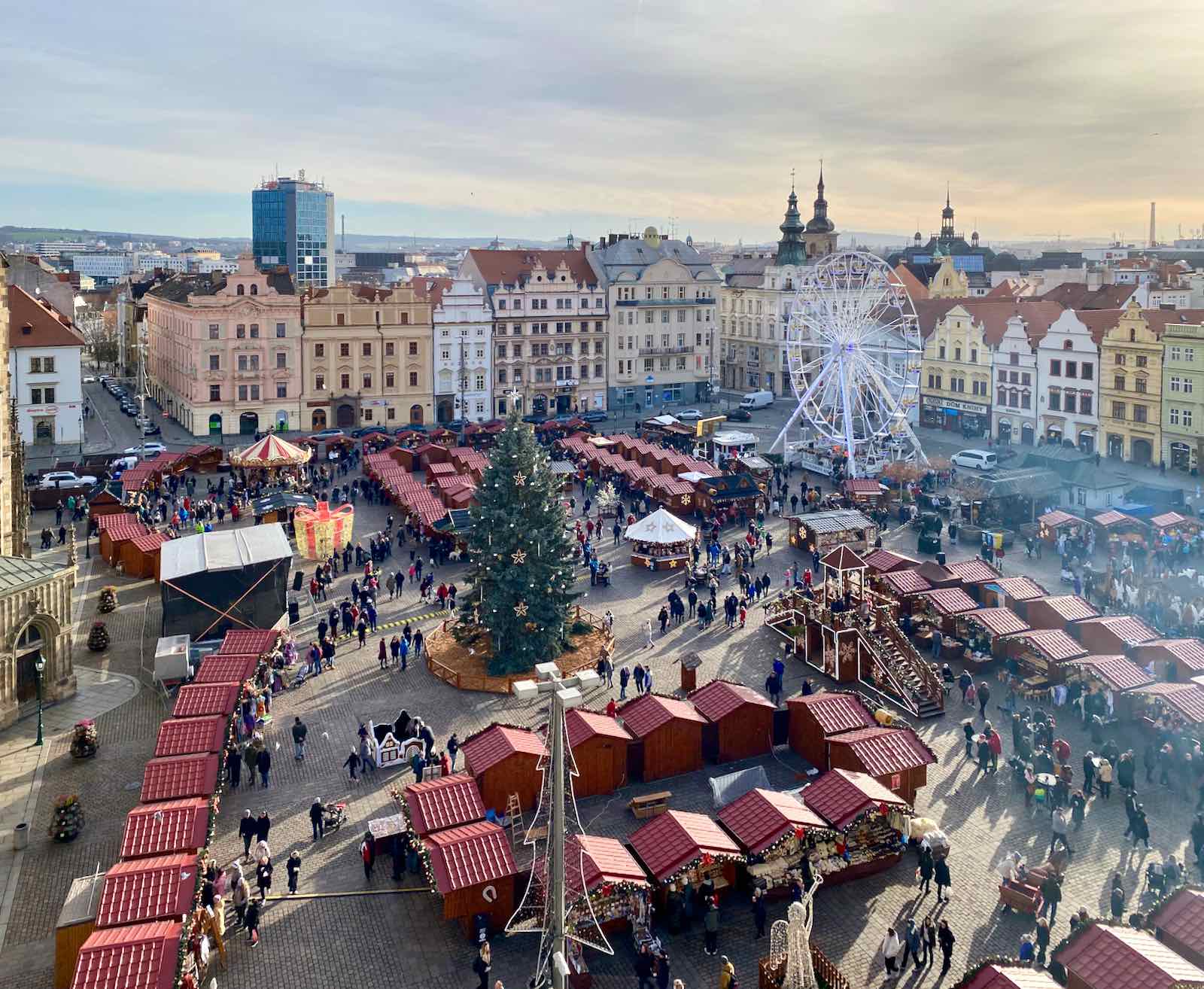 Celles autour de la place de la République sont superbes et forment un écrin de choix pour le marché de Noël de Pilsen. Un vague air de ressemblance avec la Grand Place ou la place des Héros d’Arras.