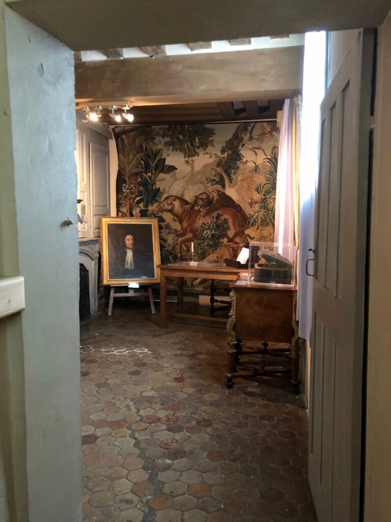 Derrière la tapisserie, une porte, qui donnait autrefois sur l’escalier en colimaçon d’une tour, démolie après la vente de la demeure. Jean de La Fontaine, toujours fauché, n’a eu d’autre choix que de vendre la maison familiale à l’un de ses cousins.