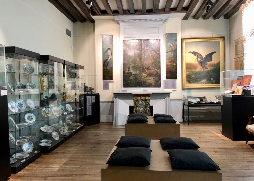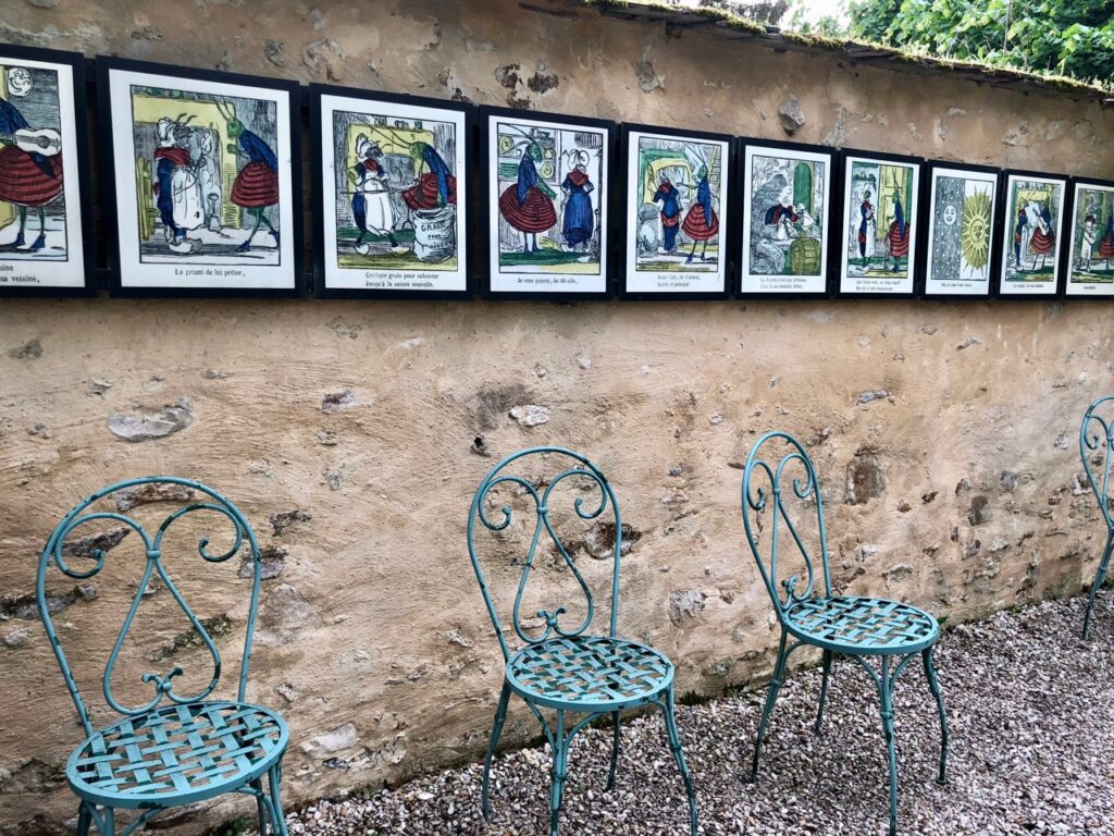 Ce que j’ai aimé aussi dans cette maison d’écrivain ? L’ambiance bourgeoisie de province qui règne dans les pièces de réception, la belle bibliothèque en chêne (d’après mes maigres connaissances en matière d’essences), les différentes statues qui habitent le musée et la petite cour où se poser un instant, sous les images d’Épinal.