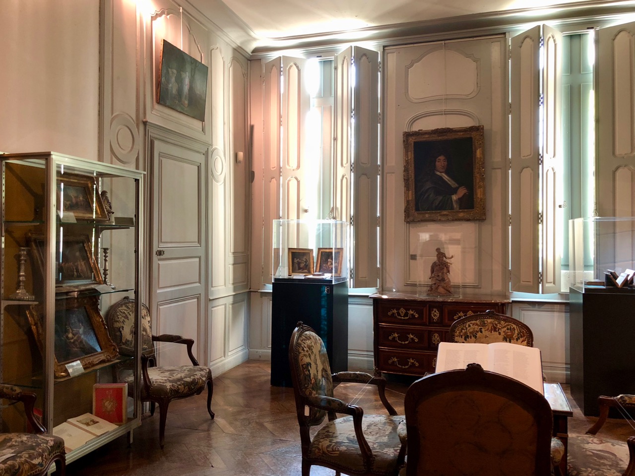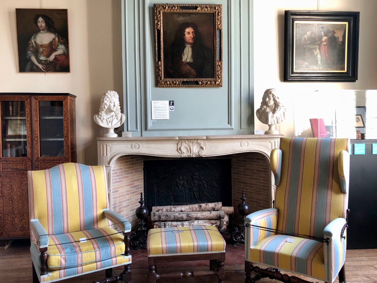 Intime et émouvant aussi, le cabinet de travail de l’écrivain, au premier étage de la maison. Au sol, de très anciennes et belles tommettes, qui comptent parmi les éléments d’époque, comme les plafonds à la française. On rêve quelques instants dans ce bureau somme toute modeste et on se dit que c’est peut-être là que l’auteur a écrit La Cigale et la Fourmi, Le Corbeau et le Renard ou d’autres de ces fables que tous les écoliers connaissent par cœur. Même les cancres !