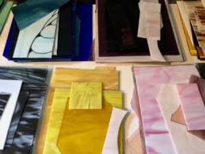En 2014, alors qu’elle voit la retraite poindre  tout doucement à l’horizon, elle sacrifie ses vacances d’été et se paye un stage au Centre international du  vitrail de Chartres. La Mecque du vitrail en quelque sorte. Elle y apprend à couper le verre, à monter le plomb.