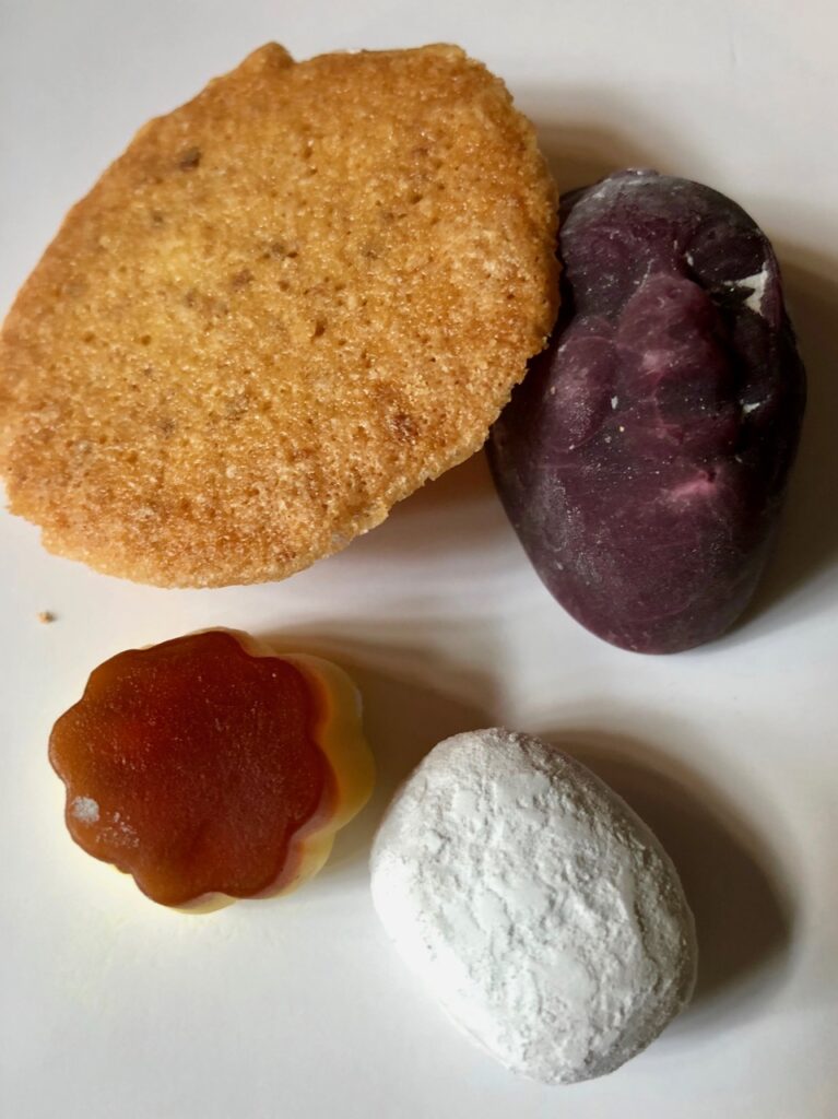 J’ai goûté sésame, lavande, cannelle, fraîcheur (ganache chocolat au lait, gingembre et citron vert), yuzu et noisette.