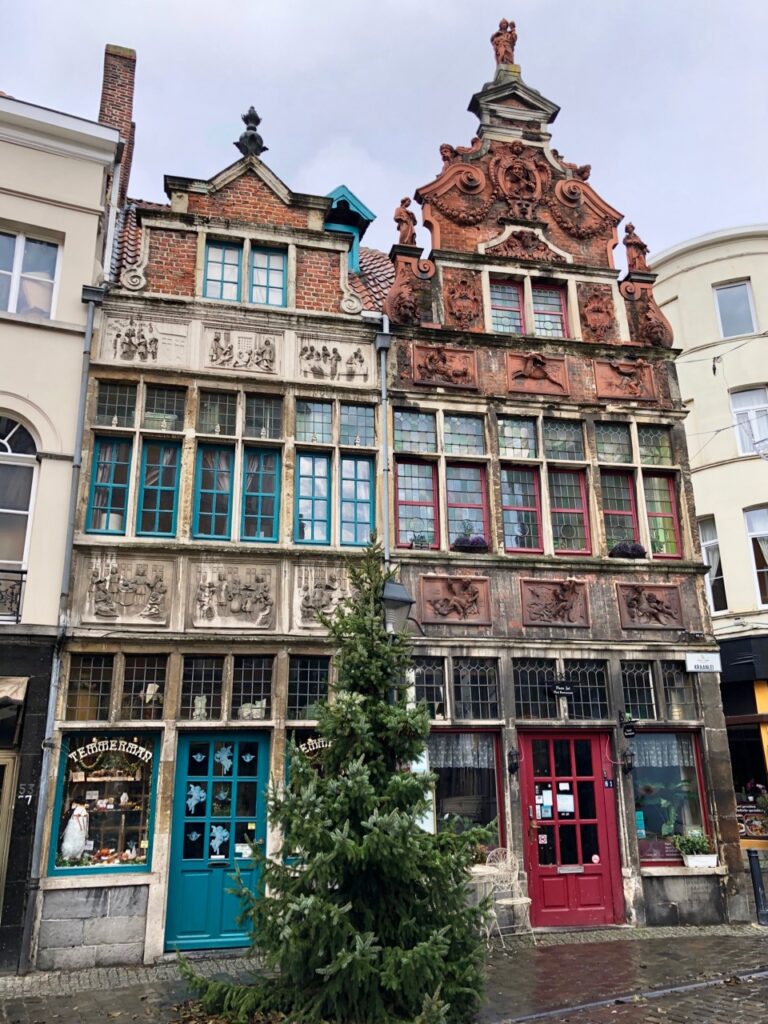 Vous êtes ici face à des maisons typiques, parmi les plus jolies de Gand. À droite, la maison du joueur de flûte. À gauche, celle de la miséricorde, avec, au rez-de-chaussée, une boutique qui fait rêver les enfants depuis 1904.