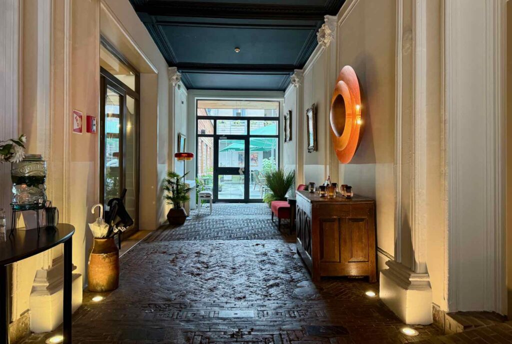 À ce premier atout de choix, il faut en ajouter un autre : le charme de l’hôtel de Flandre, niché dans deux anciennes maisons de cocher, de cinq étages. Au XIXe siècle, il servait de passage pour les marchands arrivant en calèche, comme le sol en briques de l’entrée le laisse deviner.