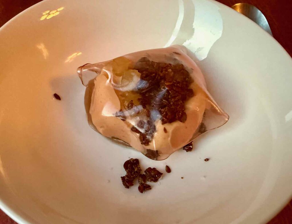 Une inédite glace au levain, pommes, graines de lin et vin rouge a joliment mis un point d’orgue à ce menu aussi créatif que recherché.