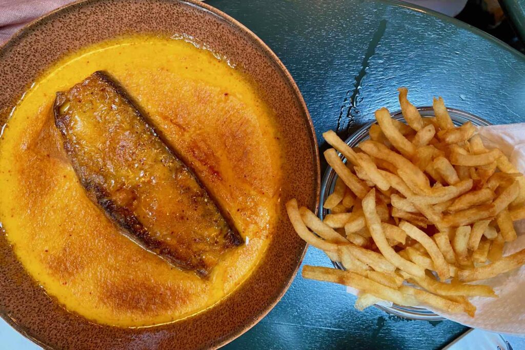 Ou un fish and chips de cabillaud (18 €), accompagné de sa petite sauce tartare revisitée, légère et crémeuse, que j’ai beaucoup aimée. Cabillaud croustillant et fines frites craquantes… largement aussi bon qu’Outre-Manche.
