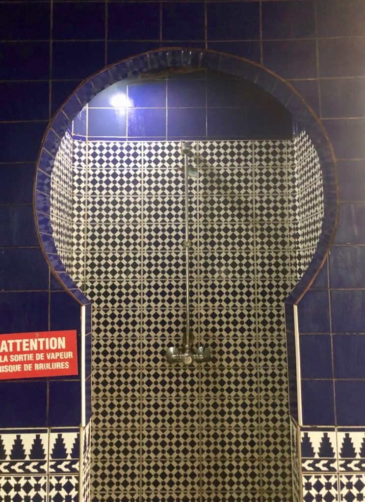 Entre deux, on se pose également un moment dans la salle chaude. J’ai oublié de demander quelle est la température ici mais c’est digne d’une journée de juillet à Fès ou Marrakech… Chaud, très chaud, mais il faut bien cela pour que ces bains magiciens remettent « en beauté notre corps et notre âme » comme disent joliment les Orientaux.