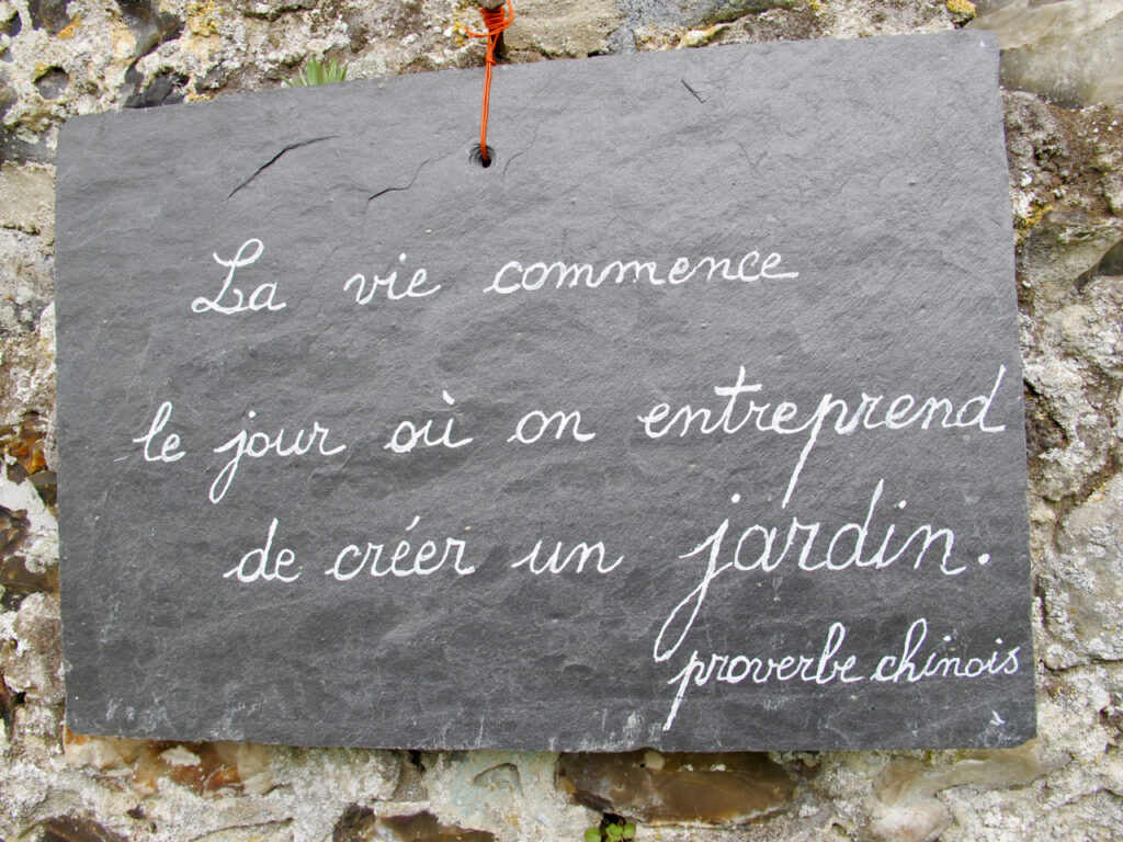 C’est sans doute ce que j’ai préféré ici. Les jolies phrases inscrites sur des ardoises, tout le long du mur d’enceinte. Des phrases de sagesse, d’humilité, d’éternité aussi, dont la méditation apporte encore un peu plus de bonheur dans cet environnement qui rend déjà heureux.