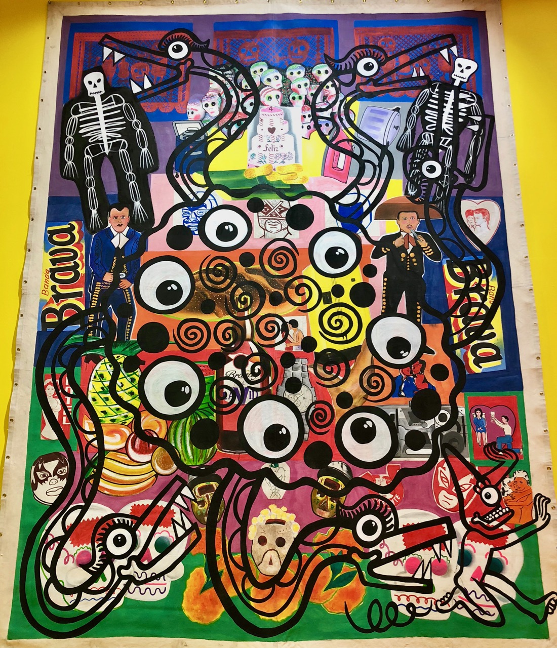 La Piscine Roubaix Di Rosa Déjeuner à KumasiHervé Di Rosa est tout cela. Simple, ouvert, bienveillant, généreux. Mais il a aussi un vrai goût des voyages. Venu peut-être de ces bateaux qu’il voit partir sans lui, pendant son enfance à Sète. Alors, au début des années 90, il entame une aventure autour du monde. Pour aller à la rencontre de l’autre. Pour échanger. Et pour construire une œuvre originale, qui mélange joyeusement toutes les formes d’art, sans aucune hiérarchie. C’est-à-dire en mariant Beaux-Arts, BD (comme ci-dessous dans Rue Gérando), affiche, art brut, graffiti et j’en passe.