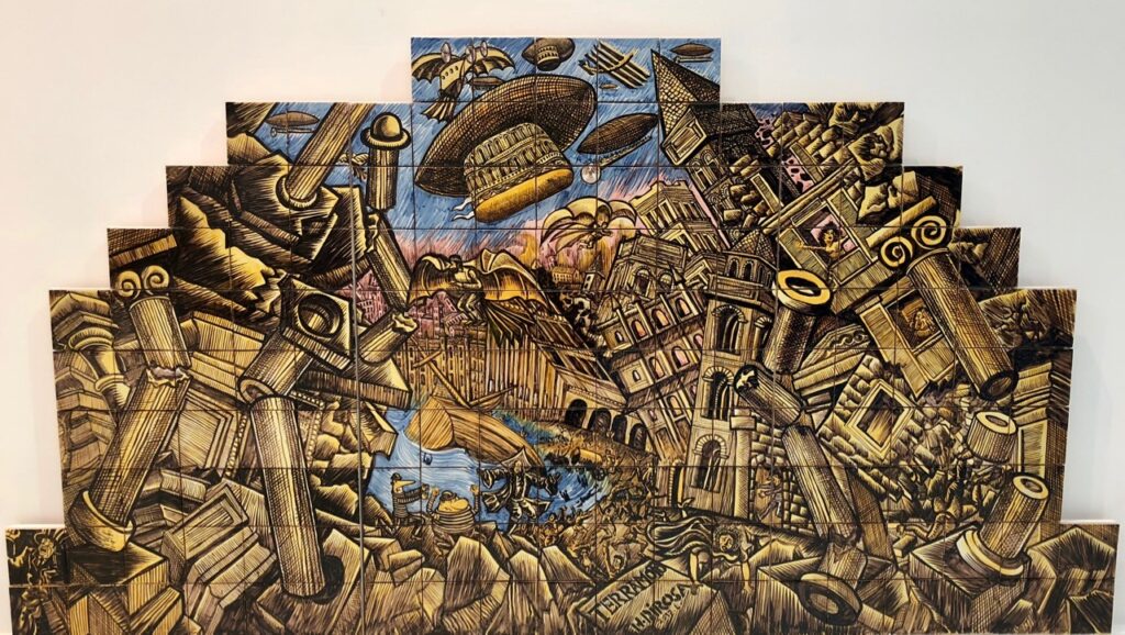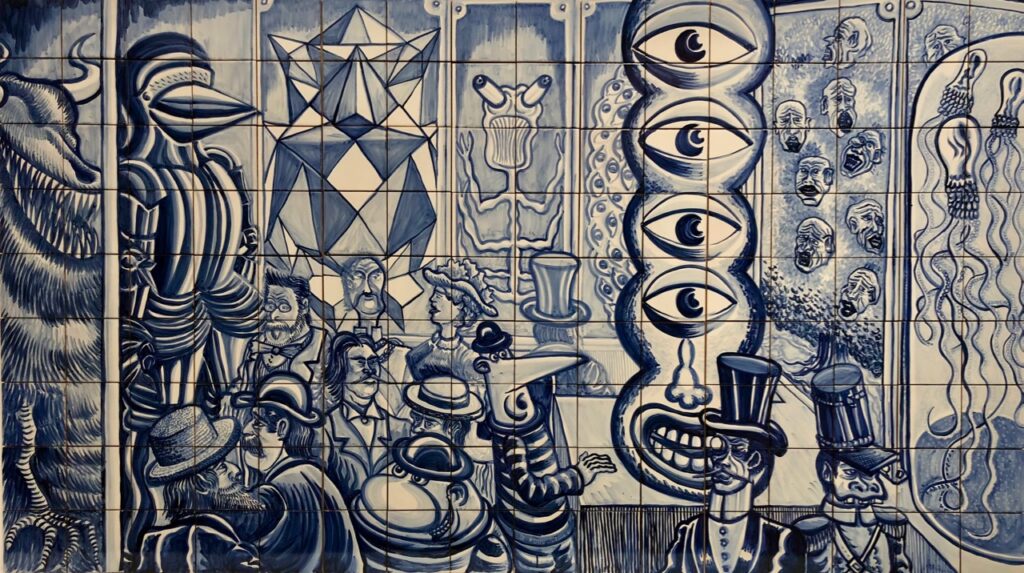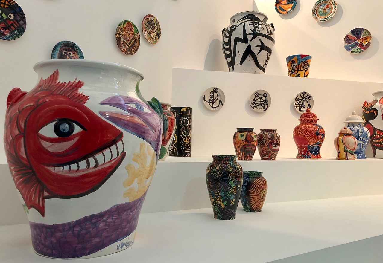 Depuis 1993, il a ainsi parcouru dix-neuf étapes, en sautant scrupuleusement la treizième, sait-on jamais… Sa dernière étape en date était Lisbonne, au Portugal, où il a travaillé avec des céramistes de l’entreprise Viùva Lamego, qui lui ont enseigné l’art de l’azulejos. Collaboration très riche, si on en juge par les créations présentées en avant-première à La Piscine de Roubaix.