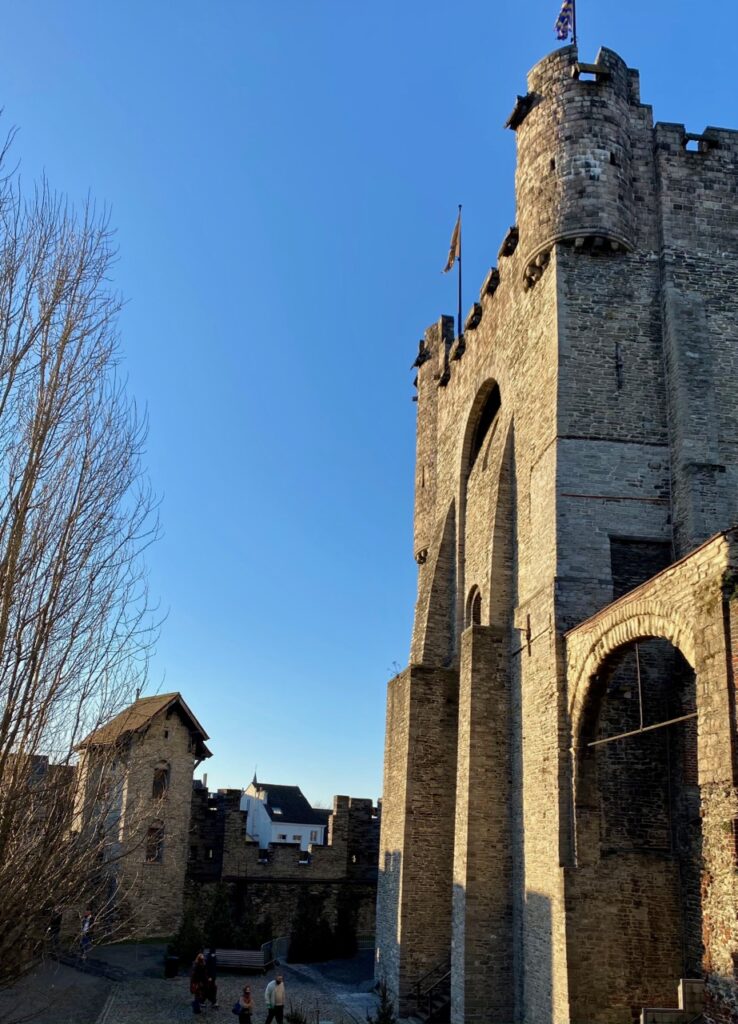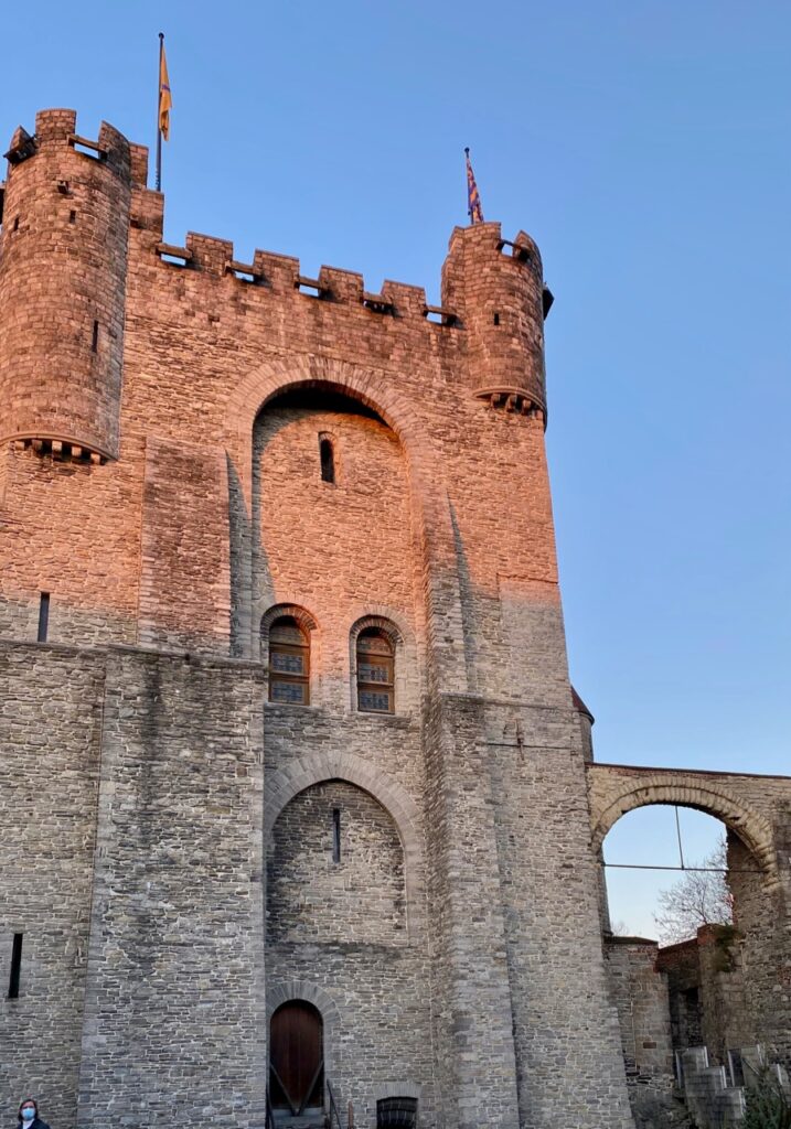 Vous aimez les châteaux forts qui racontent le chevaleresque Moyen Âge ? Vous aimez grimper au sommet d’un donjon crénelé, pour découvrir la ville posée à ses pieds ? Même si vous en frissonnez d’horreur, les instruments de torture des bourreaux de l’époque vous attirent ? J’en suis persuadée, vous allez aimer la visite du château des Comtes à Gand ! Pour son histoire mouvementée et ses vieilles pierres. Mais peut-être plus encore pour le parcours audioguidé, commenté par Wouter Deprez, un comédien flamand, drôle, si drôle. Un, deux, trois, on saute à pieds joints dans le XIIe siècle…