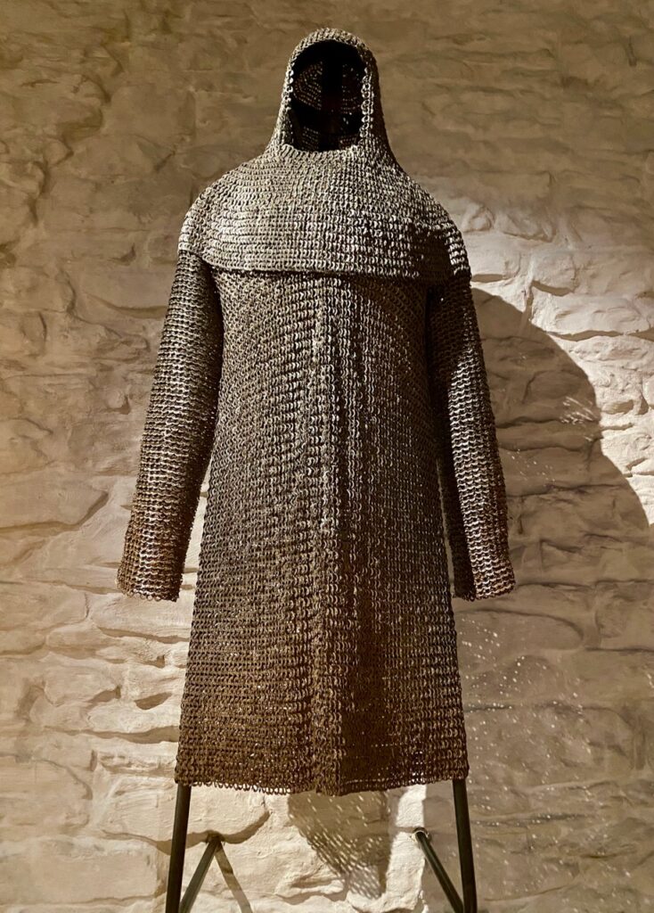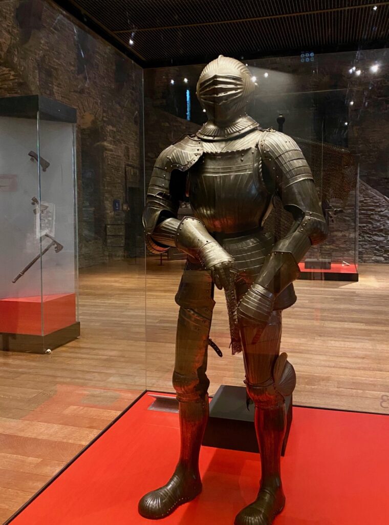 Mais heureusement pour les passionnés de Moyen Âge, une série d’armures, de cottes de mailles et d’armes sont présentées dans la grande salle, avant l’accès au donjon.