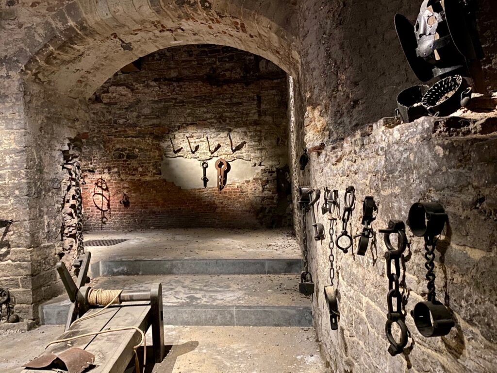 Accessible aussi de la cour, le cabinet du bourreau, installé dans l’ancien garde-manger. Perso, je n’ai que très peu d’intérêt pour ces horribles instruments de torture. Sauf à considérer qu’ils en disent long sur l’époque en question… Mais j’imagine qu’il y a bien des gens que cela intéresse…