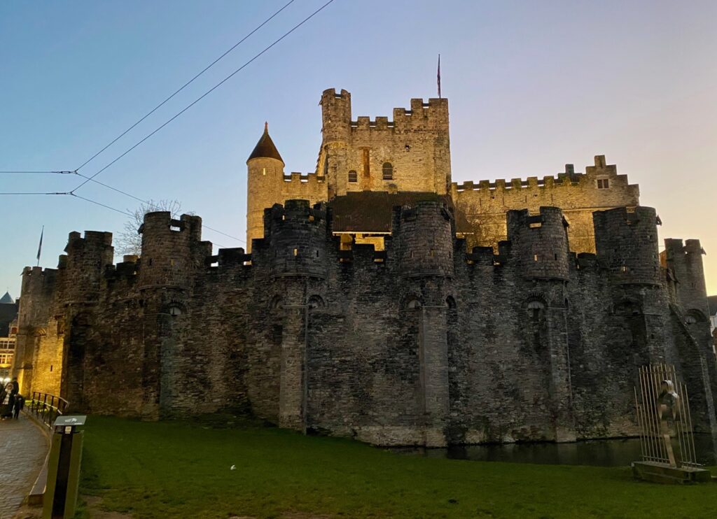 Je ne vais pas vous raconter toute son histoire, longue comme un jour sans pain. Mais sachez que le château des Comtes de Gand a été construit par le comte Philippe d’Alsace en 1180. Il vient remplacer une archaïque construction en bois, devenant la résidence des Comtes de Flandre pour des siècles.
