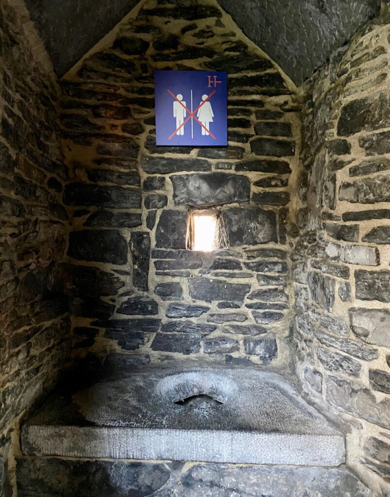 Au fil de la promenade, on découvre les anciens lieux d’aisance (comme on disait) du château, qu’il est dorénavant interdit d’utiliser. Mais, franchement, qui aurait pu avoir cette idée bizarre ?