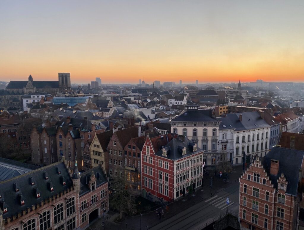 Avant de quitter le château des Comtes à Gand, je suis remontée au sommet du donjon, me doutant bien qu’un si bel après-midi ne pouvait déboucher que sur un somptueux crépuscule…