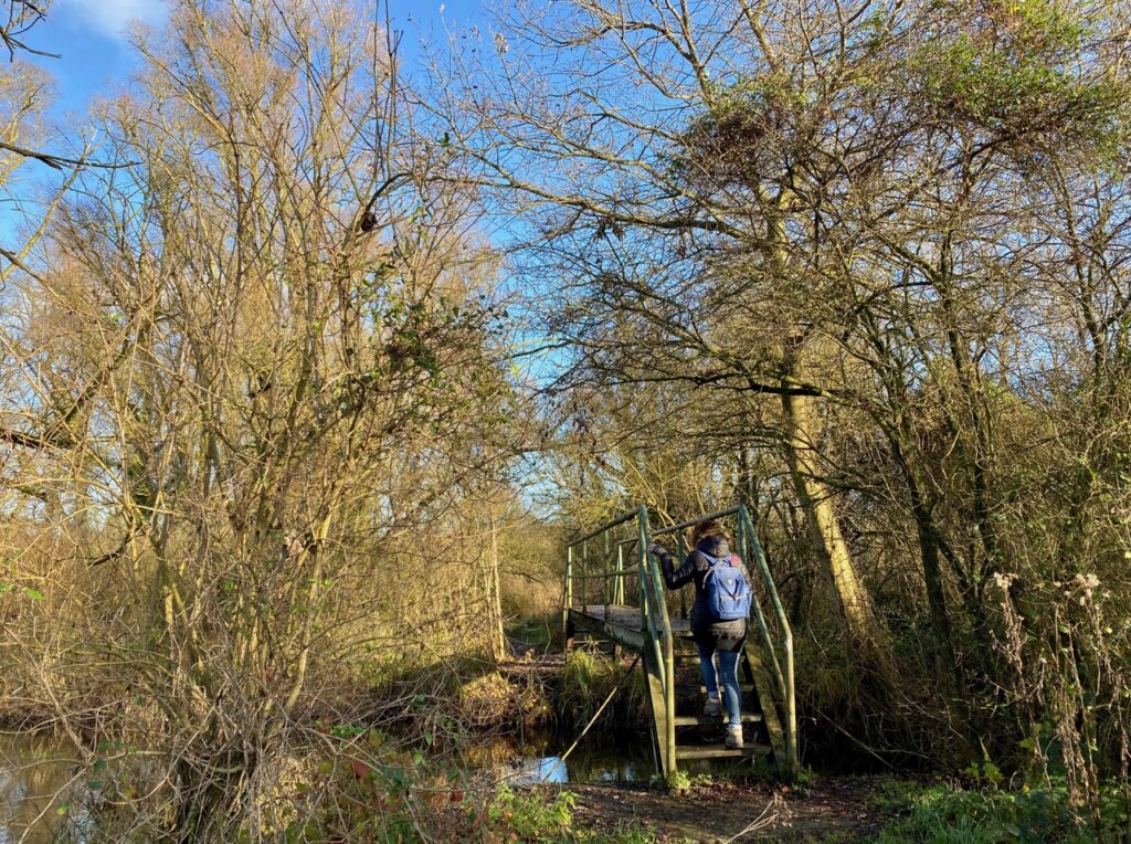 On suit ensuite le chemin de halage, on s’amuse avec nos ombres portées, on s’arrête le temps d’un selfie puis on pénètre dans le Vieux Marais. Et là, la gadoue, la gadoue, la gadoue…