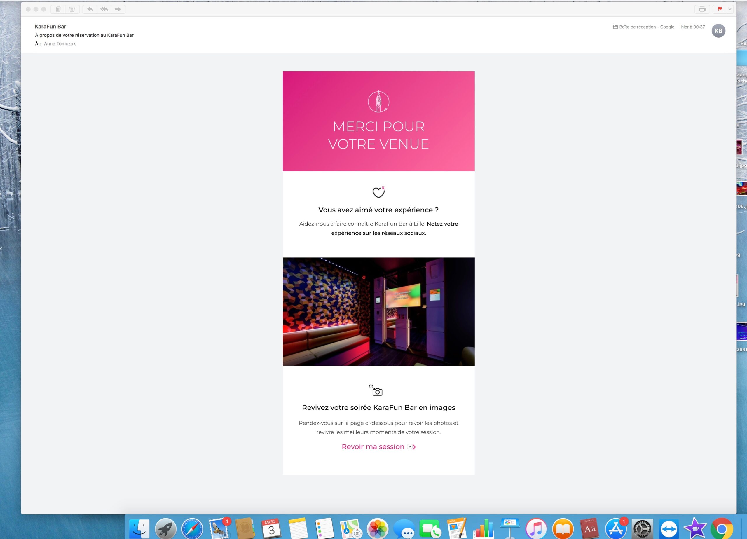 Mail remerciement après soirée - KaraFun Bar à Lille