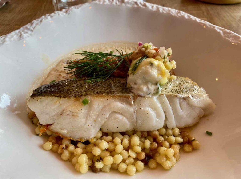A suivi un cabillaud, fregola, aubergine, féta, émulsion à l’olive, un plat aux saveurs méditerranéennes. Amoureux de son territoire, Benjamin Delpierre s’approvisionne directement auprès de trémailleurs mais aussi d’un mareyeur local, qui achète la pêche du jour à la criée boulonnaise. Forcément, quand on officie à deux pas du plus grand port de pêche français, on met les produits de la mer à l’honneur.
