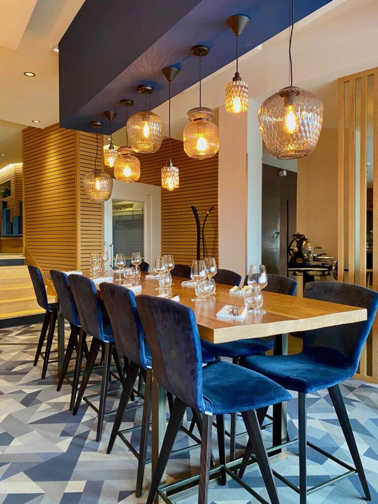 Côté déco, les propriétaires ont fait simple et contemporain. Une moquette dans un esprit carreaux de ciment (j’adore !), des tables en bois massif, des sièges hétéroclites, des boiseries sur les murs… C’est cosy tout en étant dépouillé, avec une touche d’esprit marin quand même.