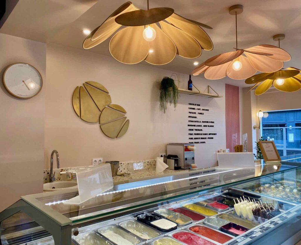 Cap ensuite sur la rue Carnot à Wimereux, où Marie et Etienne ont ouvert Nicole Glacier, une nouvelle boutique de glaces et desserts glacés, qui fournit, elle aussi, L’Aloze. Nicole (prénom de la grand-mère de Marie), c’est le glacier artisanal qui manquait dans la station et qui devrait, un jour prochain, faire des petits ici ou ailleurs sur la Côte d’Opale.