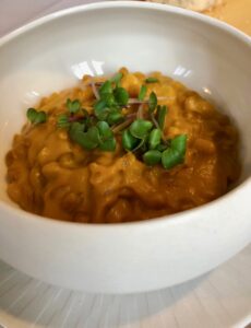 À deux pas du littoral, j’ai opté ensuite pour un autre de mes plats préférés. Les Saint-Jacques côtières, accompagnées d’épeautre picard (servi à part), de potimarron et de butternut. Et surtout d’une exquise sauce à la réglisse, qui a donné toute sa personnalité au plat.