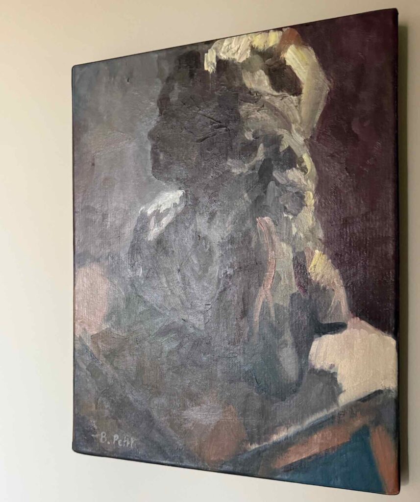 Au premier étage, une œuvre contemporaine de Barbara Petit représente à sa manière La Petite Châtelaine. « C’est la première chose que nous avons achetée », raconte Corinne. Une trouvaille sur internet, un peu par hasard, comme un clin d’œil du destin.