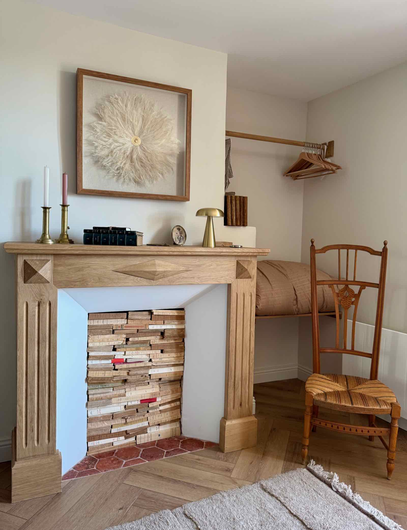 Gîte-La-Petite-Chatelaine-Saponay-cheminee-chambre