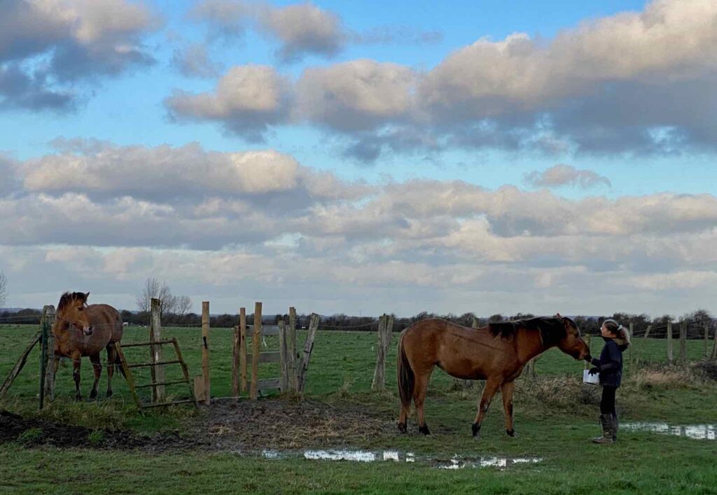 Une mare, qui abrite un couple de cygnes, des chevaux henson et un poney au pré, des cigognes et des hérons de passage, un chien et un chat, La Vieille Écluse est un petit paradis aux airs d’Arche de Noé.