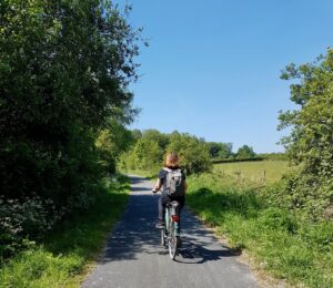 Voie-verte-de-l-Avesnois-femme-a-velo-vu-de-derriere