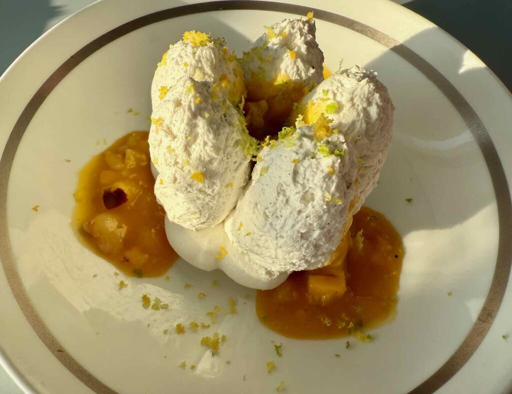 En dessert, le menu proposait soit une pavlova, mangue, litchi, soit un Liégeois. Mais à la façon de L’Atelier du Cerisier, avec chocolat, café et noisette. Là encore, mes gourmets amis n’ont rien eu à redire.