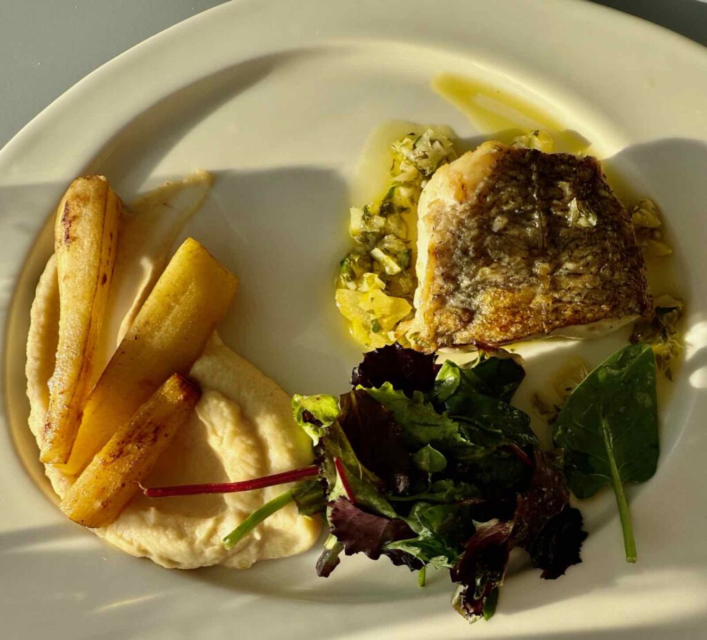 En plat, mes compères gastronomes ont testé le filet de merlu, déclinaison de légumes racines, vierge au citron confit pour l’un.