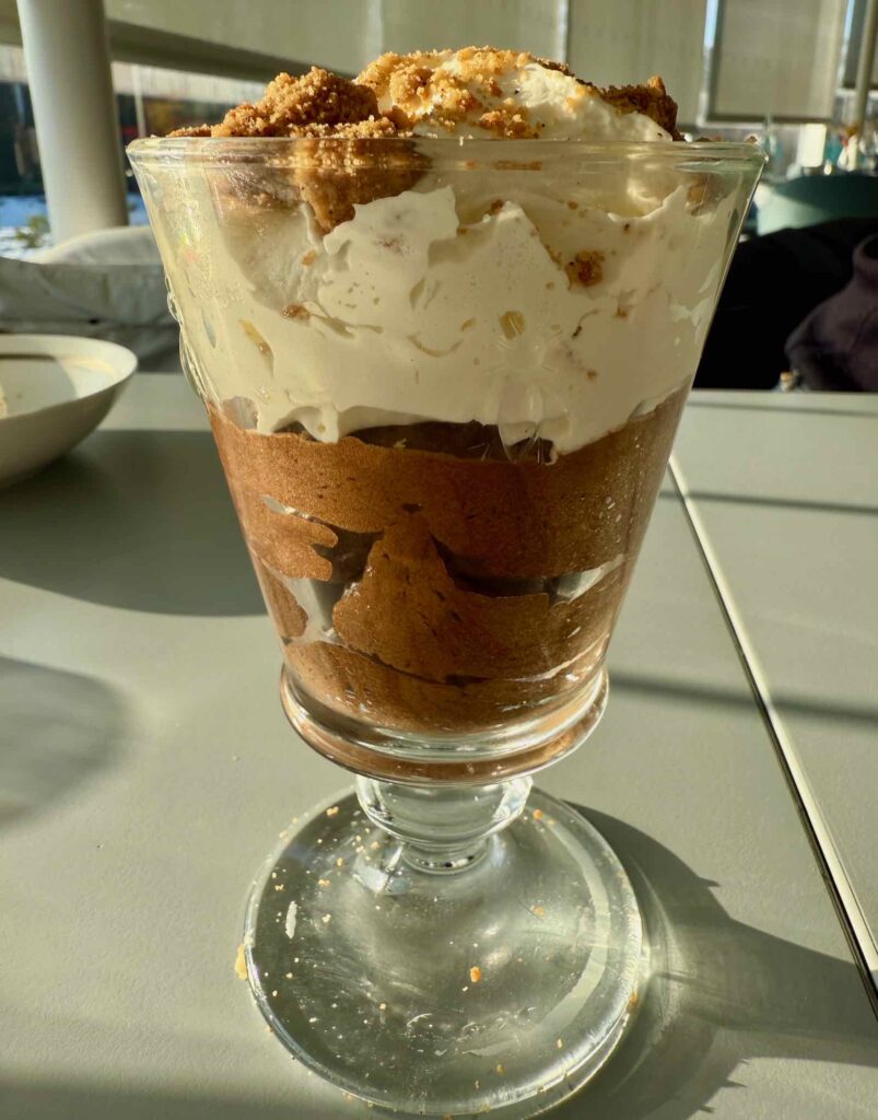 Refaisant bande à part, j’ai opté pour un plat à la carte. À savoir les noix de Saint-Jacques de Boulogne, accompagnées de chou, mangue et sauce curry cacao (32 €). Hésitant entre plusieurs options, je dois avouer que c’est cette intrigante sauce qui m’a décidée. Elle était aussi délicieuse que créative et inattendue et je ne regrette pas mon choix.