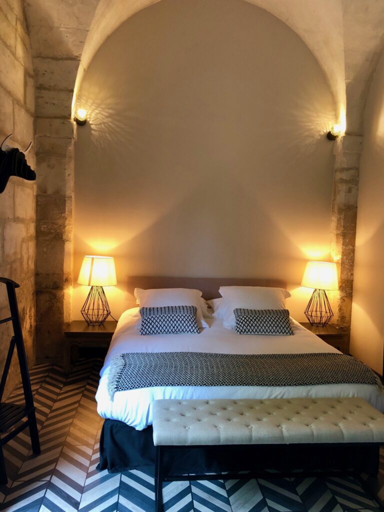 Tandis que, de l’autre côté de la dépendance, L’Atelier de Louise est, comme son nom l’indique, un ancien atelier. Plus aucune trace de ce passé dans l’élégante chambre, sobre et à la déco plutôt géométrique. Mais un petit plus : une terrasse privative avec son salon de jardin, attenante à la chambre.