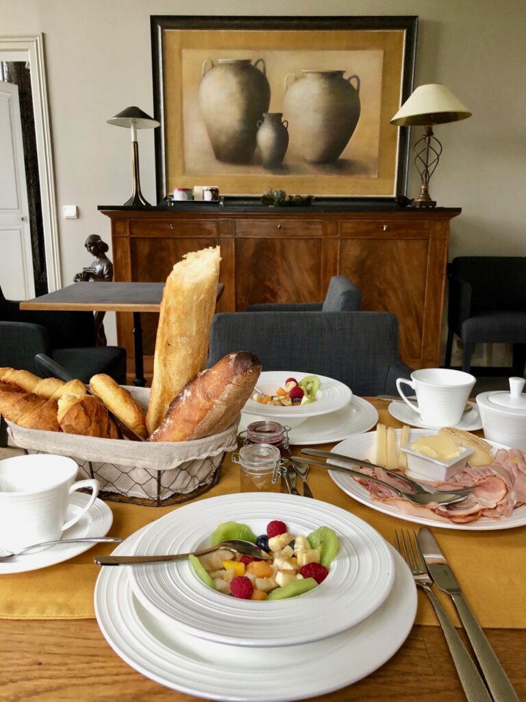 Côté petit déjeuner aussi, Sophie joue en première division. La baguette feuilletée de son boulanger est à tomber, sa salade de fruits frais est aussi belle que bonne (avec de la mangue fraîche dedans) et tout est fait minute, jus d’orange comme café.