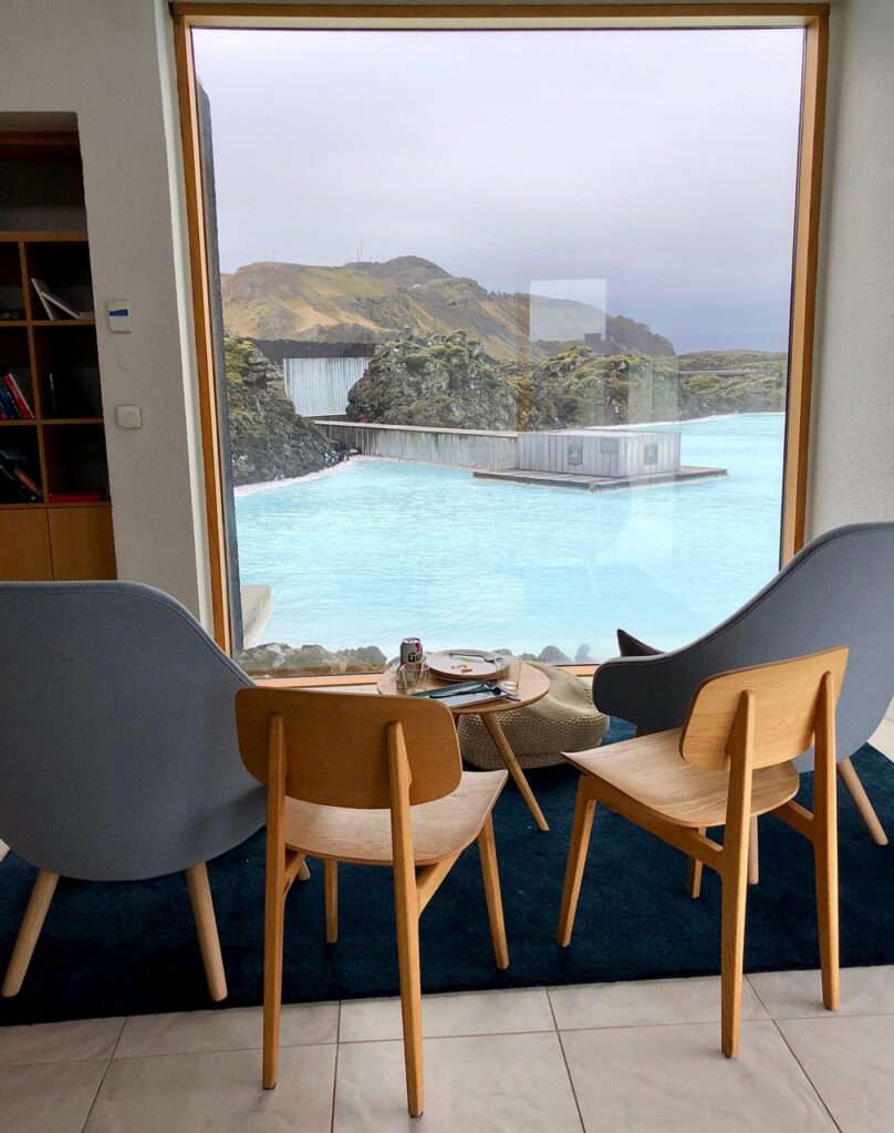Souhaitant passer le premier après-midi au Blue Lagoon, nous avions décidé d’en profiter le lendemain matin, avant ou après le petit déjeuner… Mais c’était oublier que la météo peut se montrer mauvaise joueuse en février… Ainsi, une mini-tempête nous a obligés à profiter du lagon bleu bien à l’abri, derrière la vitre du salon…