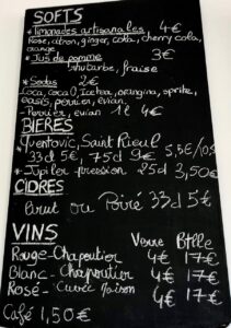 Burger fermier des Enfants rouges Le Touquet – carte boissons