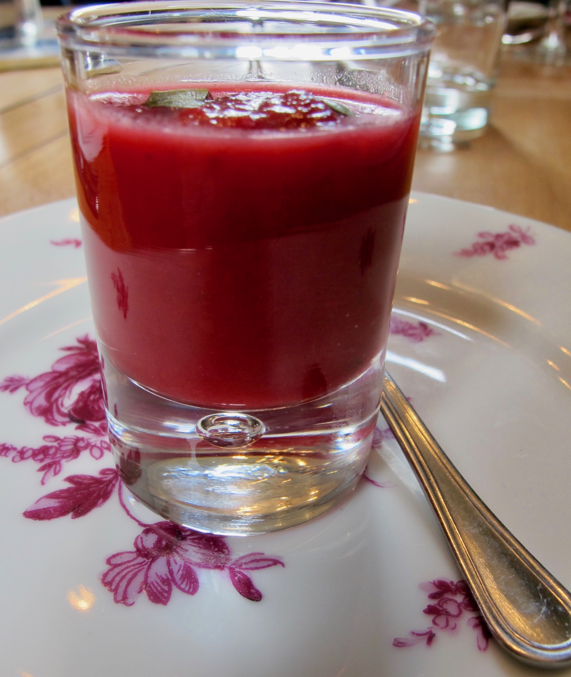 Gazpacho au restaurant du Jardin des ifs Gerberoy Oise