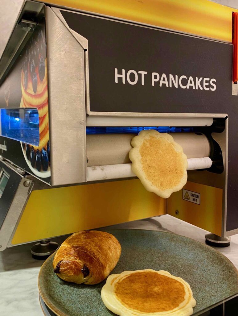À propos des petites crêpes, qui ont fini noyées sous le chocolat, sachez que vous les ferez vous-mêmes. Juste en appuyant sur le bouton d’une machine diabolique, qui fait tout, toute seule.
